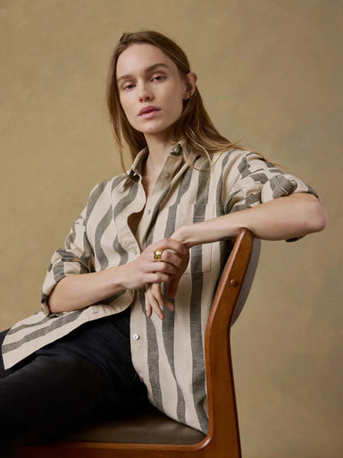 Crafted from a yarn-dyed cotton-linen blend, this button up is inspired by a vintage find and washed for a balanced hand feel that’s soft yet struc...