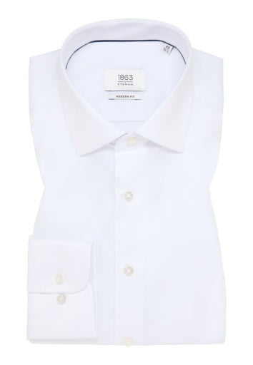 The Eterna Luxury Shirt in Modern Fit with Kent Collar is the ultimate addition to your wardrobe. Available in sleek White or Navy, this shirt offers a modern and professional look. Made with high-quality materials for a comfortable fit, it will elevate any outfit. Treat yourself to the luxury of Eterna.