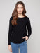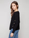 This black boat neck sweater is a versatile piece for any wardrobe. Featuring charming side button details and made from a soft fabric blend, it combines comfort with style. Whether worn with jeans for a casual look or paired with a skirt for something dressier, this sweater embodies timeless fall fashion.
