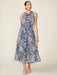 This stunning tropical print chiffon dress in moody shades of blue is flowy and flawless. Mini ruffle details throughout, a gathered bodice, flounce hem and of course pockets make this a one and done midi dress just the right amount of extra.