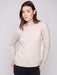 This cream-colored sweater features delicate raised floral embroidery that adds subtle texture and elegance. Designed for comfort, its soft fabric elevates everyday style with refined detailing. Perfect for layering or wearing on its own, this piece offers a sophisticated yet relaxed look.