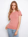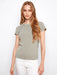 The ribbed crew neck t-shirt is a spring wardrobe essential. Crafted from a soft, stretchy fabric blend, it offers a clean, classic silhouette that pairs effortlessly with any outfit. Perfect for casual outings or relaxed evenings, this haze blue t-shirt delivers comfort and style in equal measure.