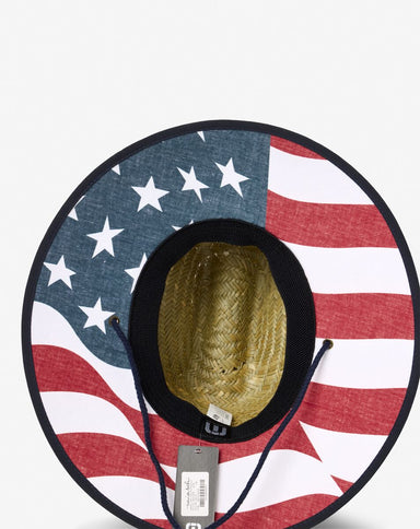 Cooler than it sounds. The MELTED POPSICLE straw hat brings the shade (literally) with a patriotic umbrella patch and a flag-waving underbill graph...