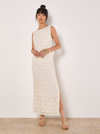 Work chic crochet into your weekly rotation with this lace tile skirt. Lined for comfort, it falls to a flattering maxi length and boasts a side sp...