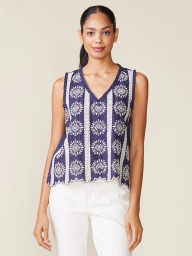 Embroidered Cotton Button Tank