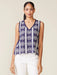 This embroidered cotton button tank features delicate mini ruffle details that add a touch of elegance to a casual silhouette. Crafted for breathability and comfort, it’s an ideal choice for warm weather occasions like picnics and parades. The button front allows easy wear while enhancing the top’s charming, eye-catching appeal. Perfect for elevating your summer wardrobe with subtle yet refined style.