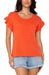 Transform your wardrobe with our sophisticated and captivating flutter sleeve sweater top. Its flirty sleeves and pop of color make it a standout piece that effortlessly transitions from casual to dressy. The ideal addition to any outfit.