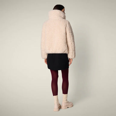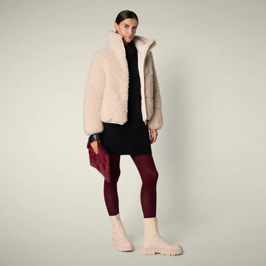 Made from plush faux shearling with animal-free padding, the Kennie model women’s puffer jacket delivers both comfort and style. The high collar an...