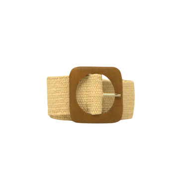 Add a natural touch to your outfit with this straw belt featuring a stylish wooden buckle. Perfect for layering over dresses or high-waisted looks.