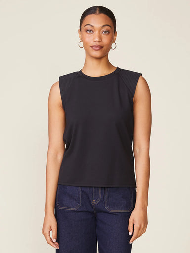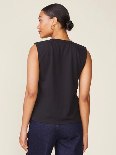 Slip into this sculpted trapunto stitched shoulder tee to elevate your everyday. This tee mixes a richly, fluid ponte bodice with crisp poplin shou...