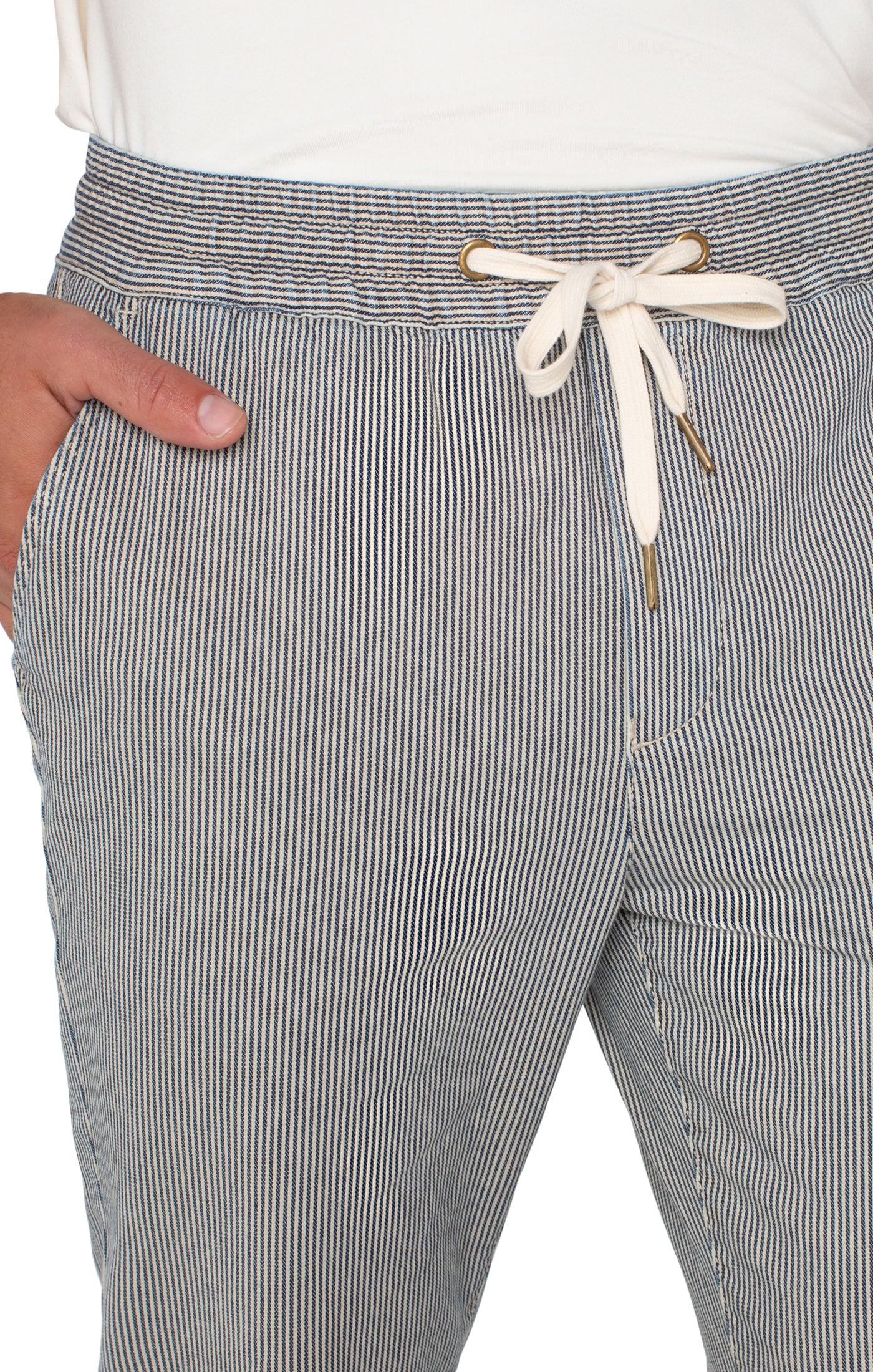 Enhance your casual wardrobe with the Liverpool Los Angeles Drawstring Waist Jogger in Ecru/Navy. With its adjustable drawstring waist and comfortable fit, these joggers are perfect for everyday wear. Made from high-quality materials, these joggers offer both style and durability. Upgrade your athleisure look today.