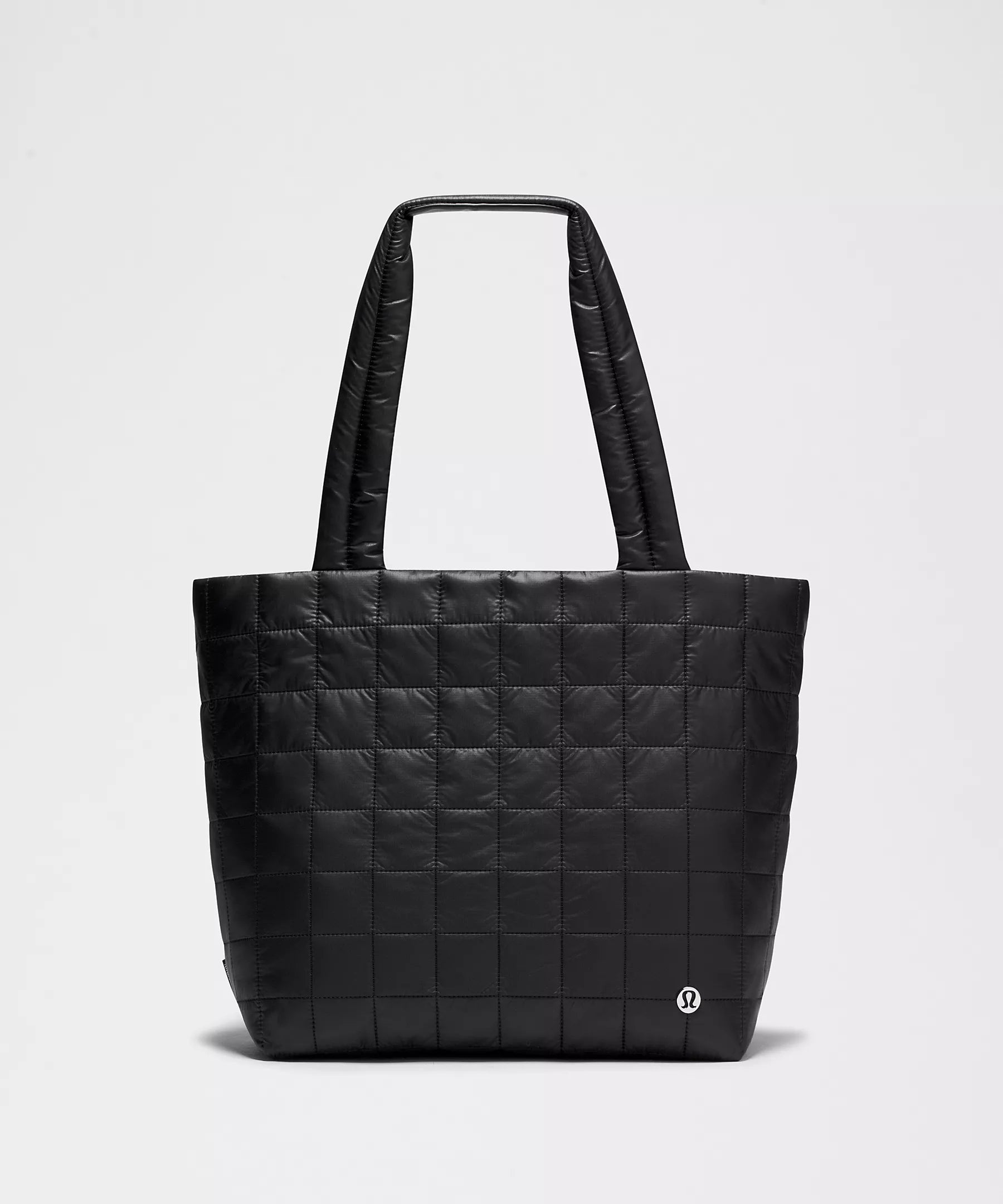 Stylish and durable, the lululemon Quilted Grid Tote in Black is the ultimate bag for all your storage needs. The quilted grid design adds a touch of sophistication while the spacious interior can fit all your essentials. Stay organized in style with this sleek and functional tote.